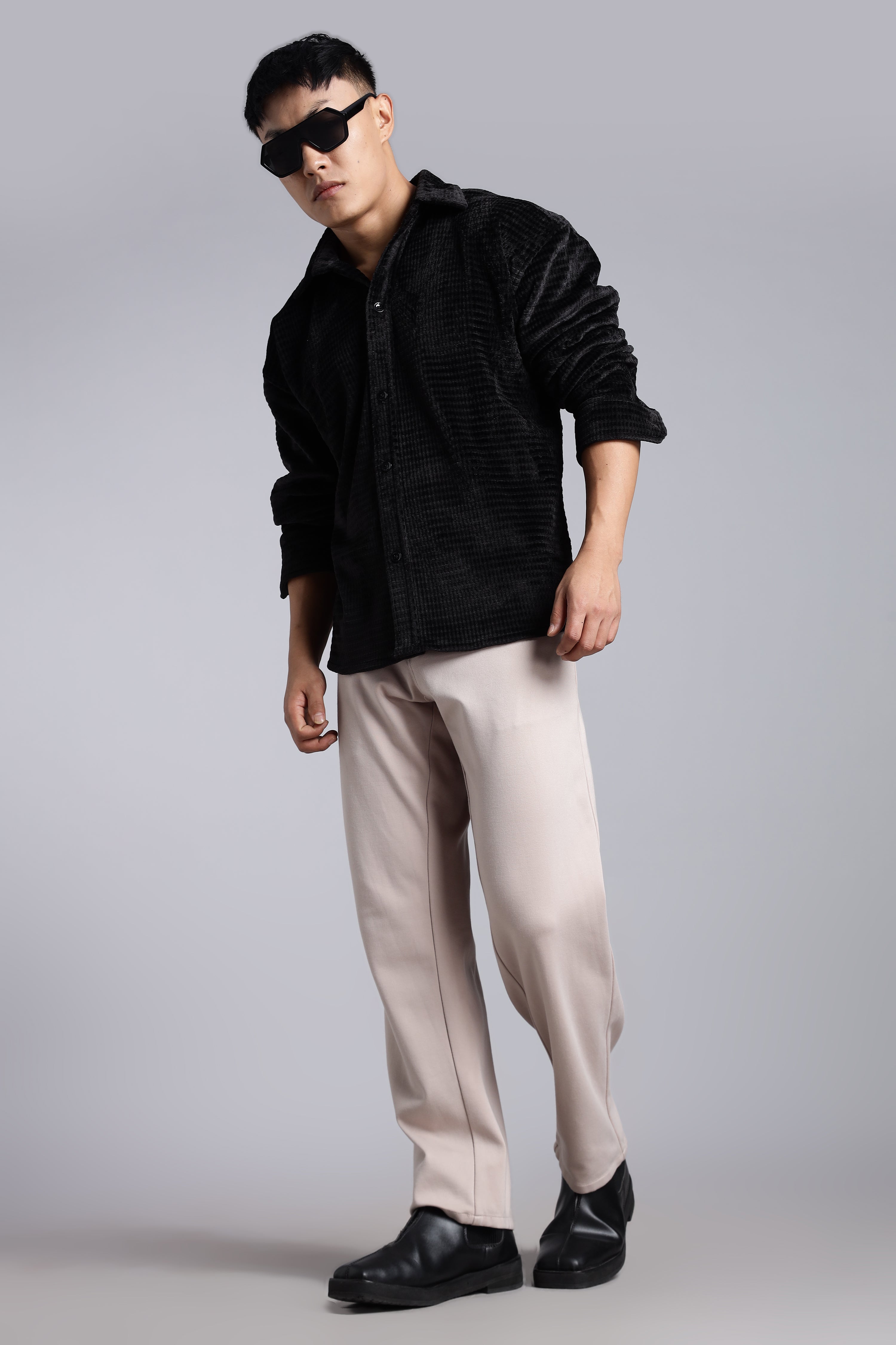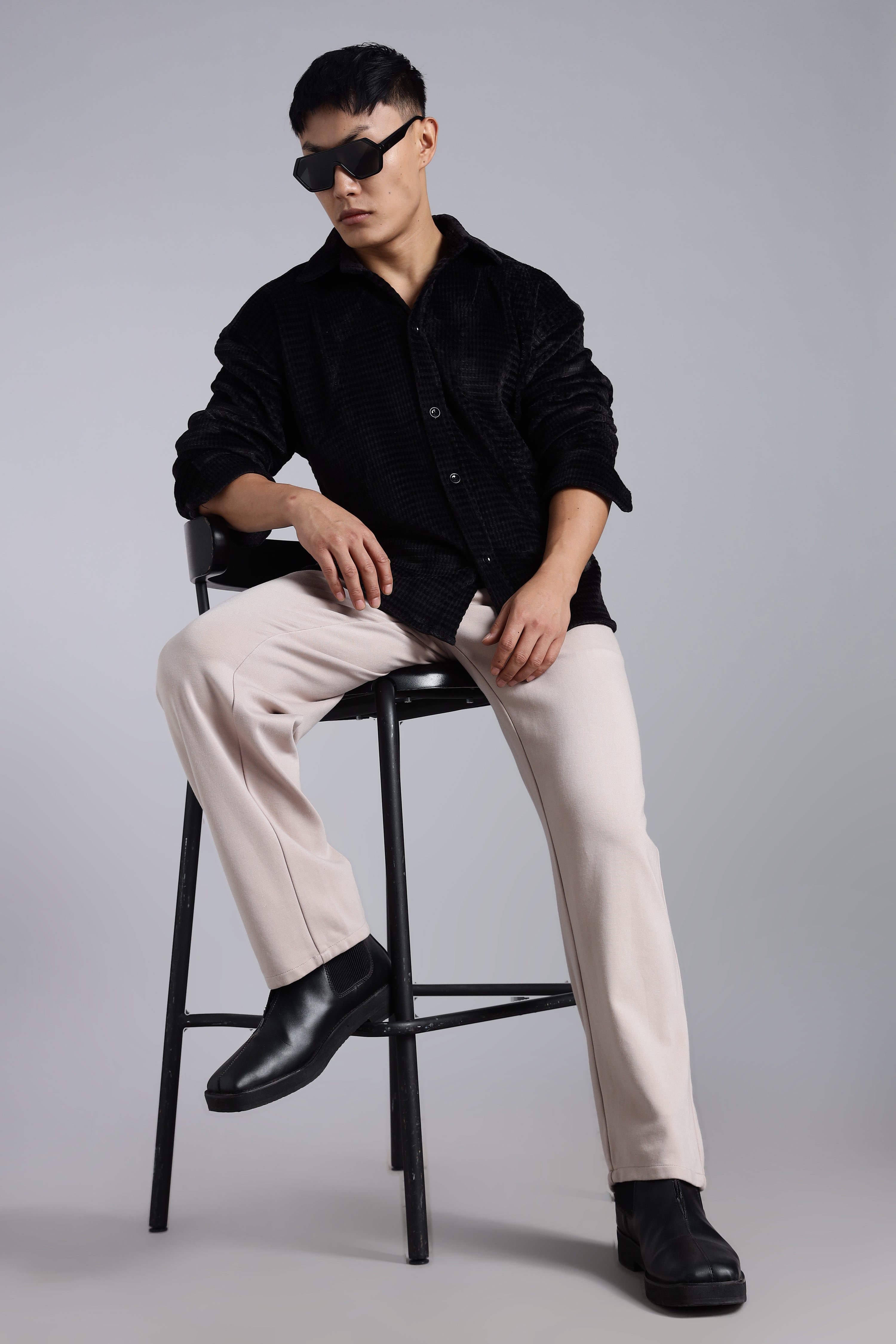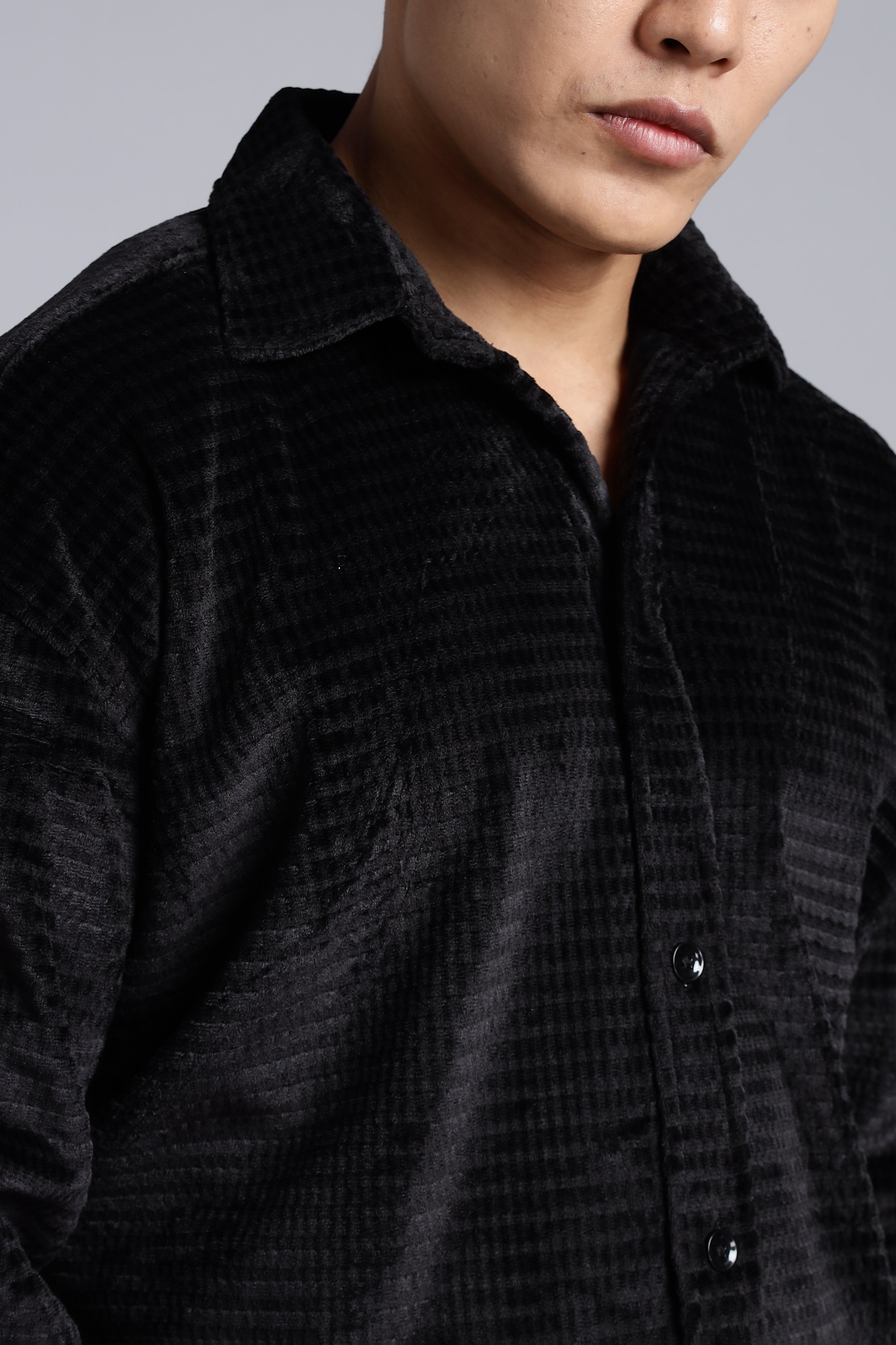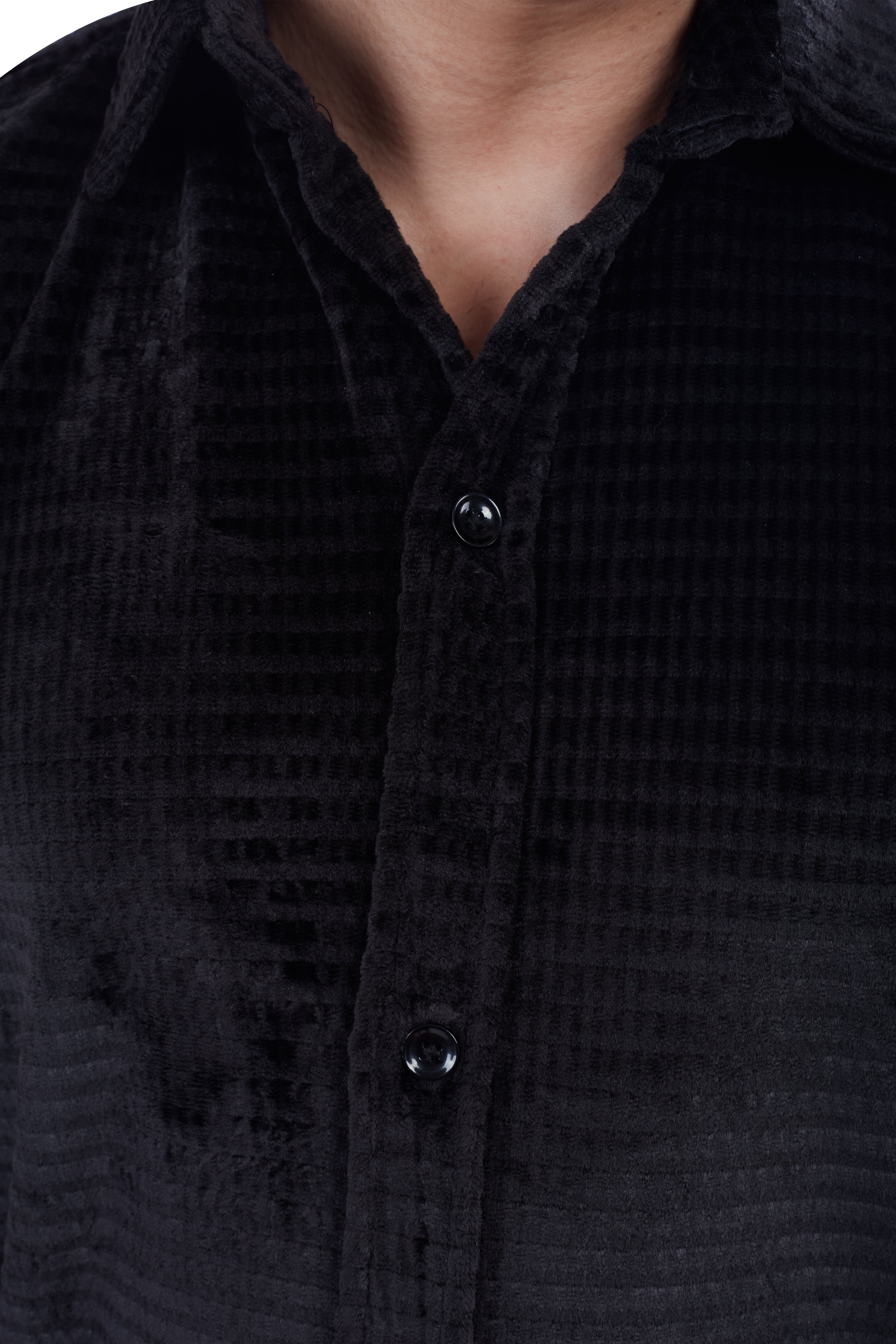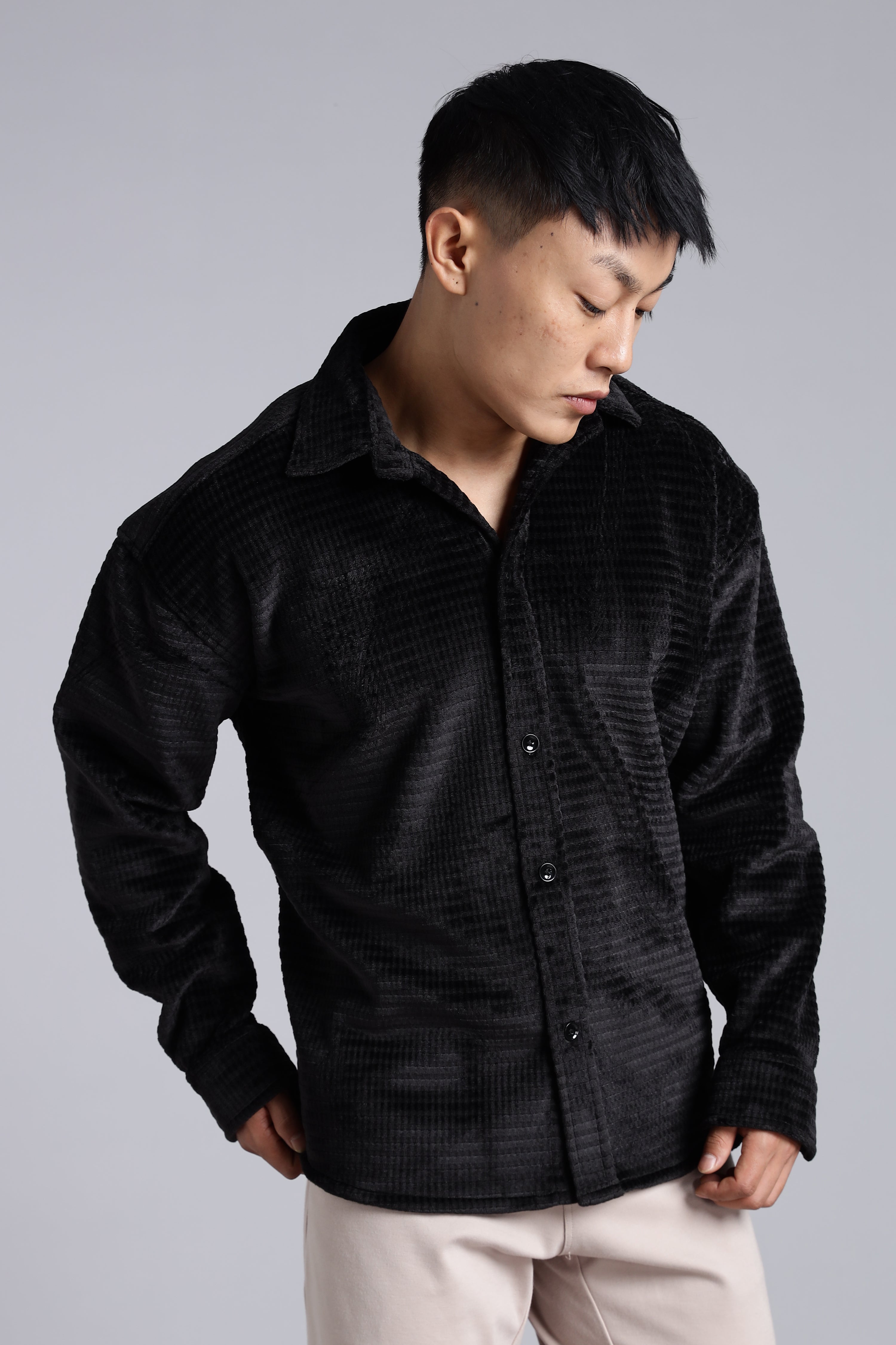 “Timeless and refined, this black rabbit velvet shirt brings together modern design and luxurious comfort. The rich velvet fabric provides a plush, smooth feel, while the minimalist style offers versatility for both formal and casual settings. A must-have for those seeking understated luxury.”