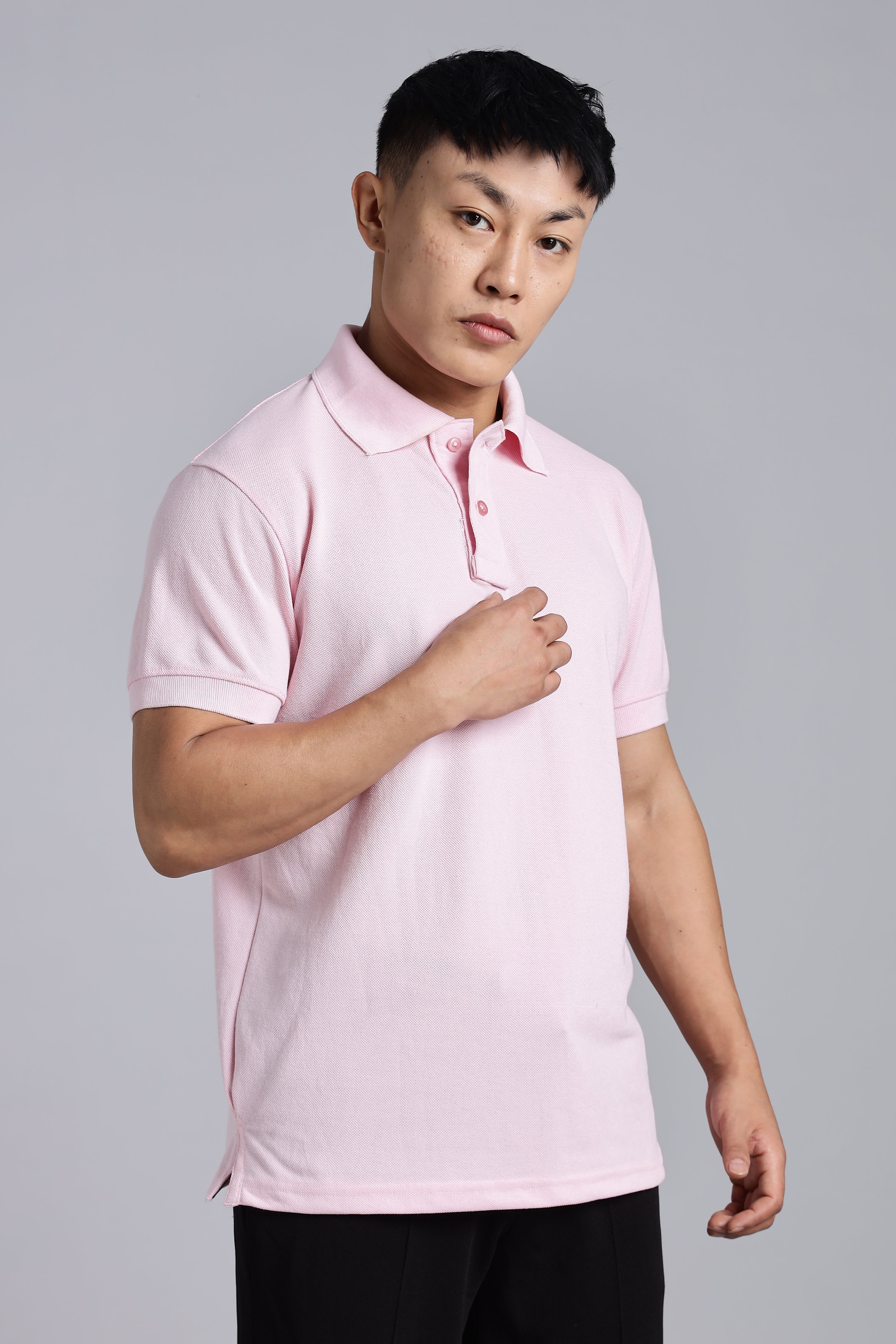 Pink Polo T-shirt "A soft and fresh pink polo that brings a sense of calm yet speaks volumes. With its minimalist design, this piece offers an easy way to stand out in a crowd without trying too hard. It’s for those who appreciate subtle elegance and want to add a touch of warmth and personality to their wardrobe."