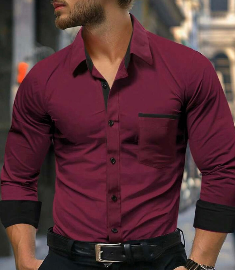 "Make a refined statement with this maroon premium shirt. Crafted from soft cotton and Lafar Berlin fabric, this shirt offers both comfort and luxury for your summer wardrobe. The maroon body is contrasted with a sleek black collar and cuffs, adding a touch of sophistication to the design. Perfect for dressing up or down, this shirt is the epitome of modern elegance with a twist."