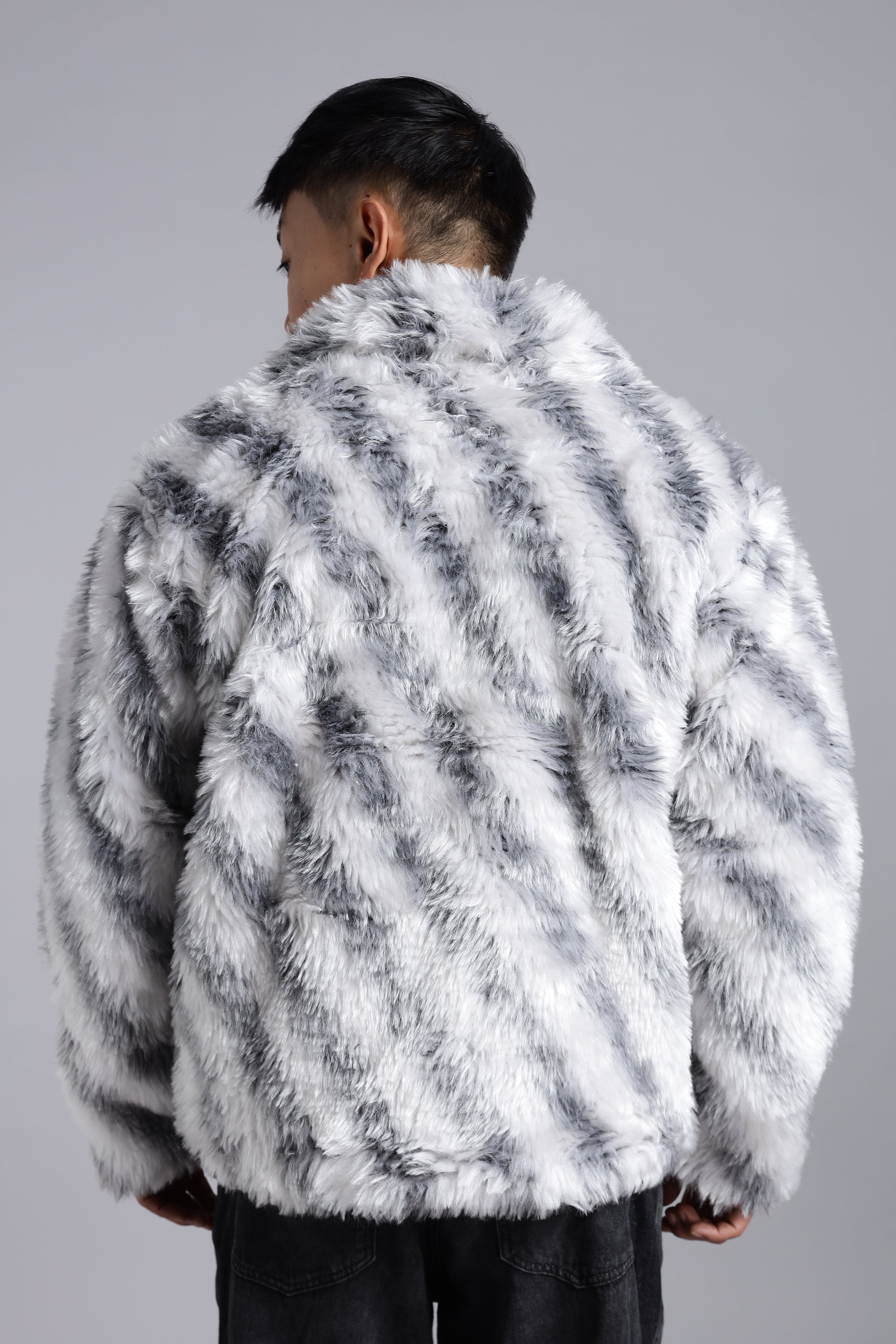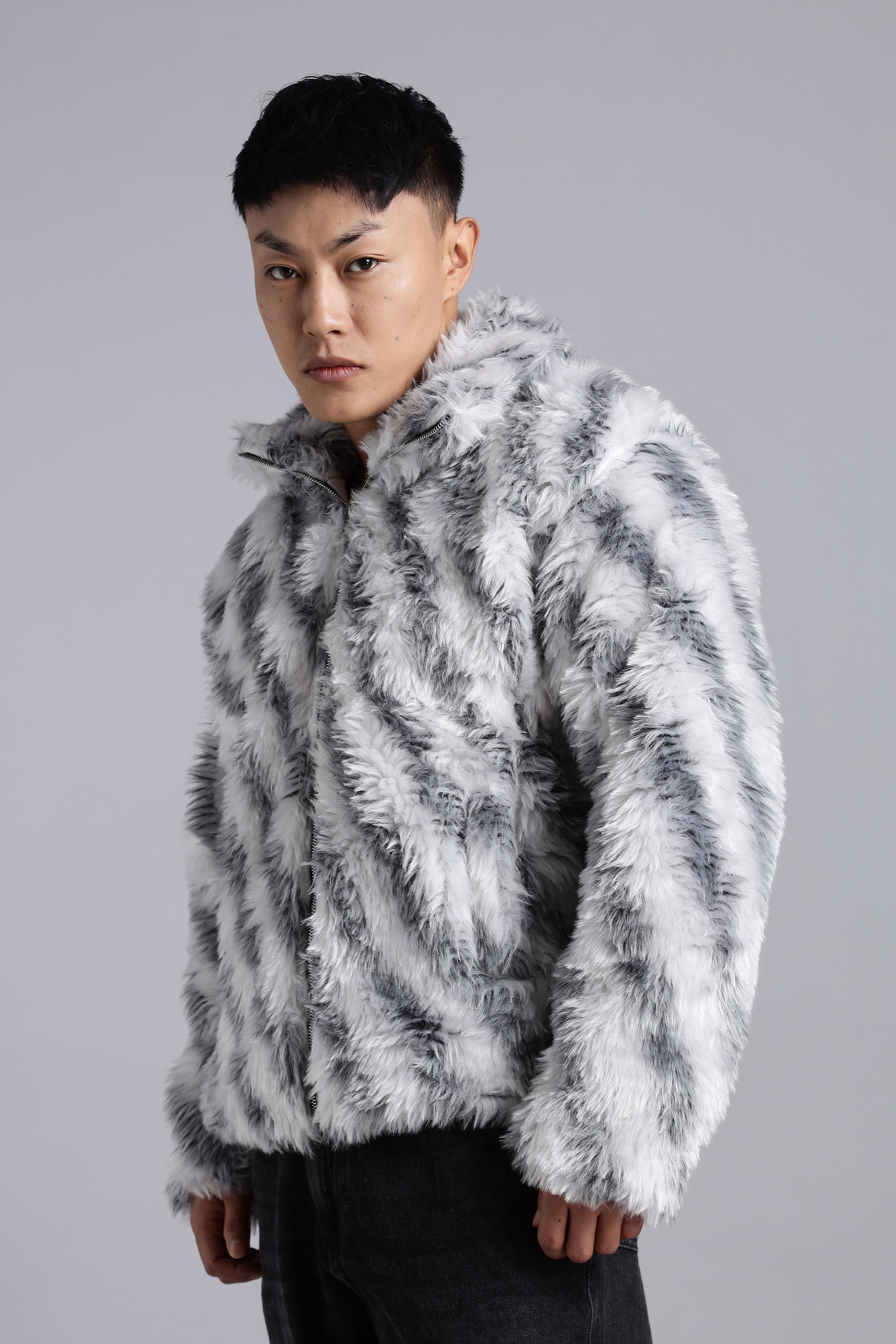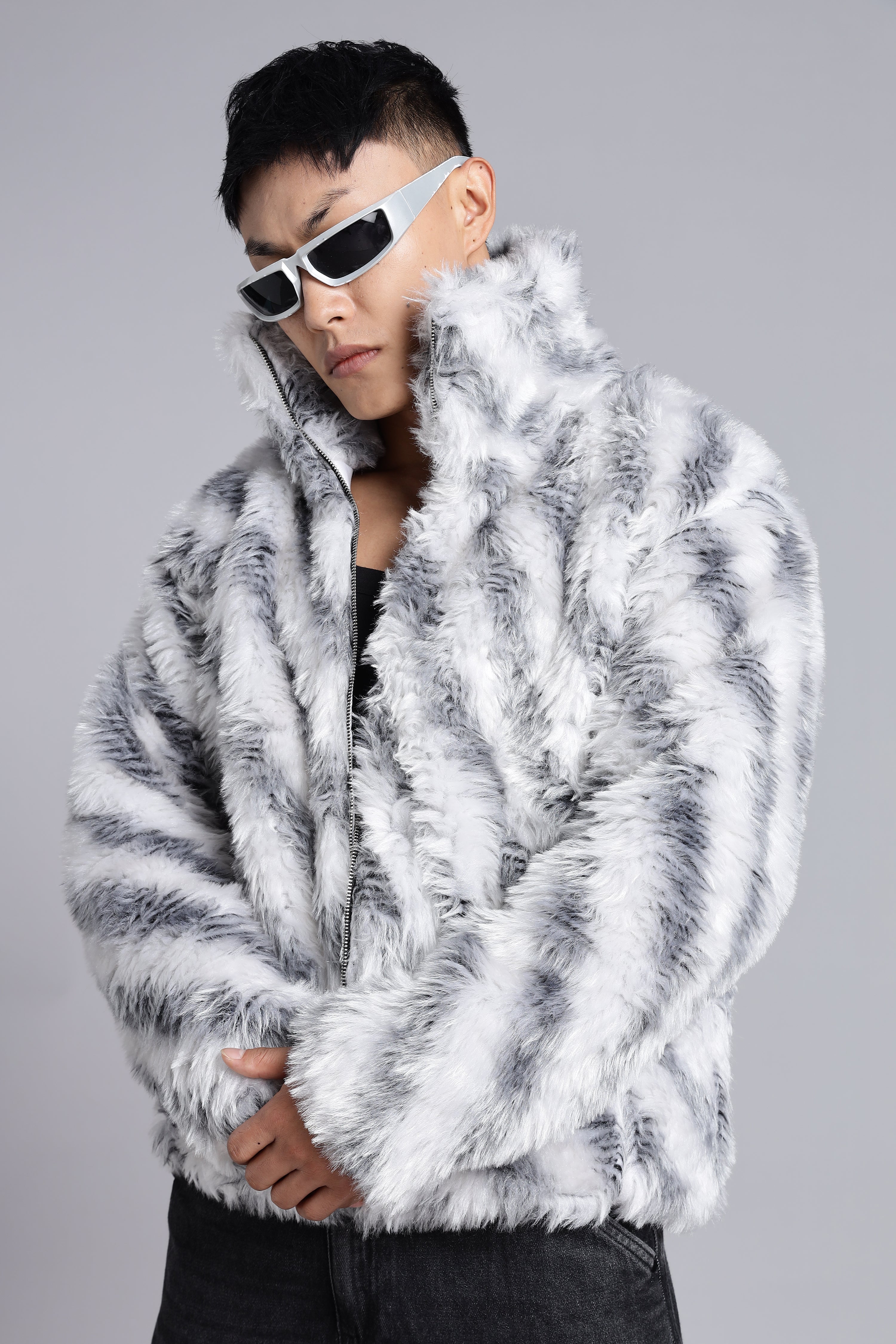 Unleash your inner menace with the Ice Storm Edition – a statement jacket built for those who don’t blend in. This ultra-soft white faux fur piece features grey tiger-stripe patterns that exude raw energy and dominance. Fully lined for maximum comfort and crafted to stand out in any crowd, it’s more than just outerwear – it’s armor for the street kings and queens.