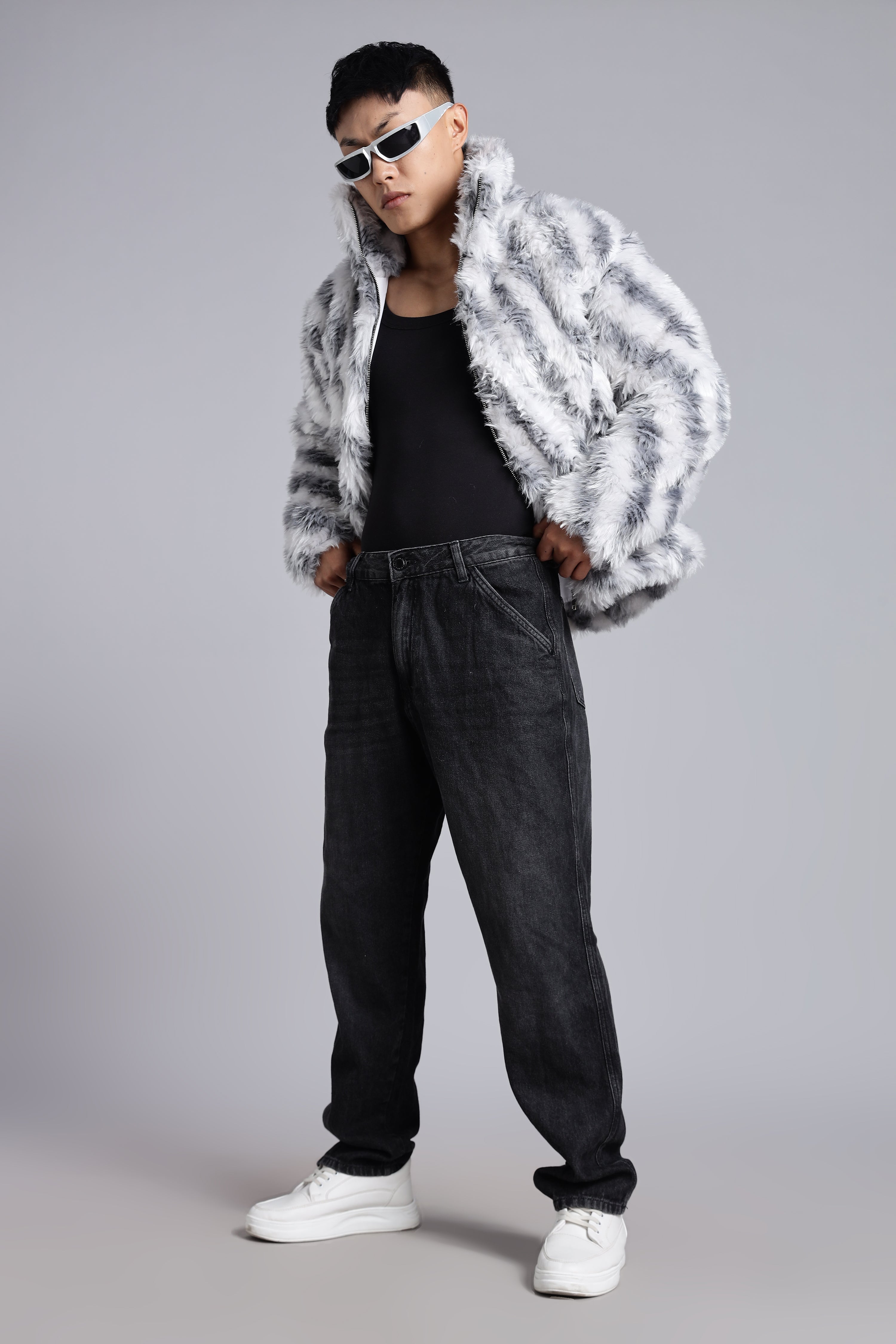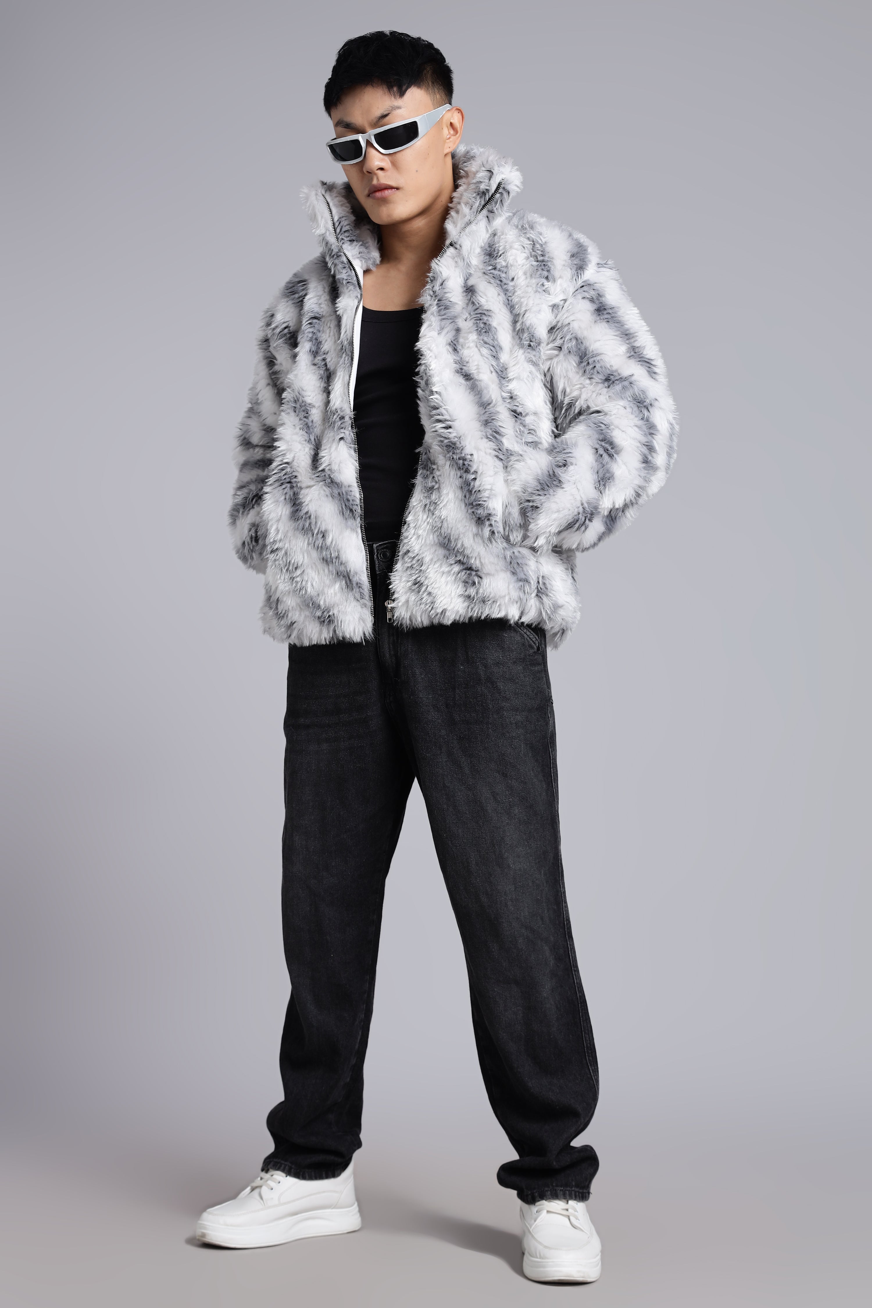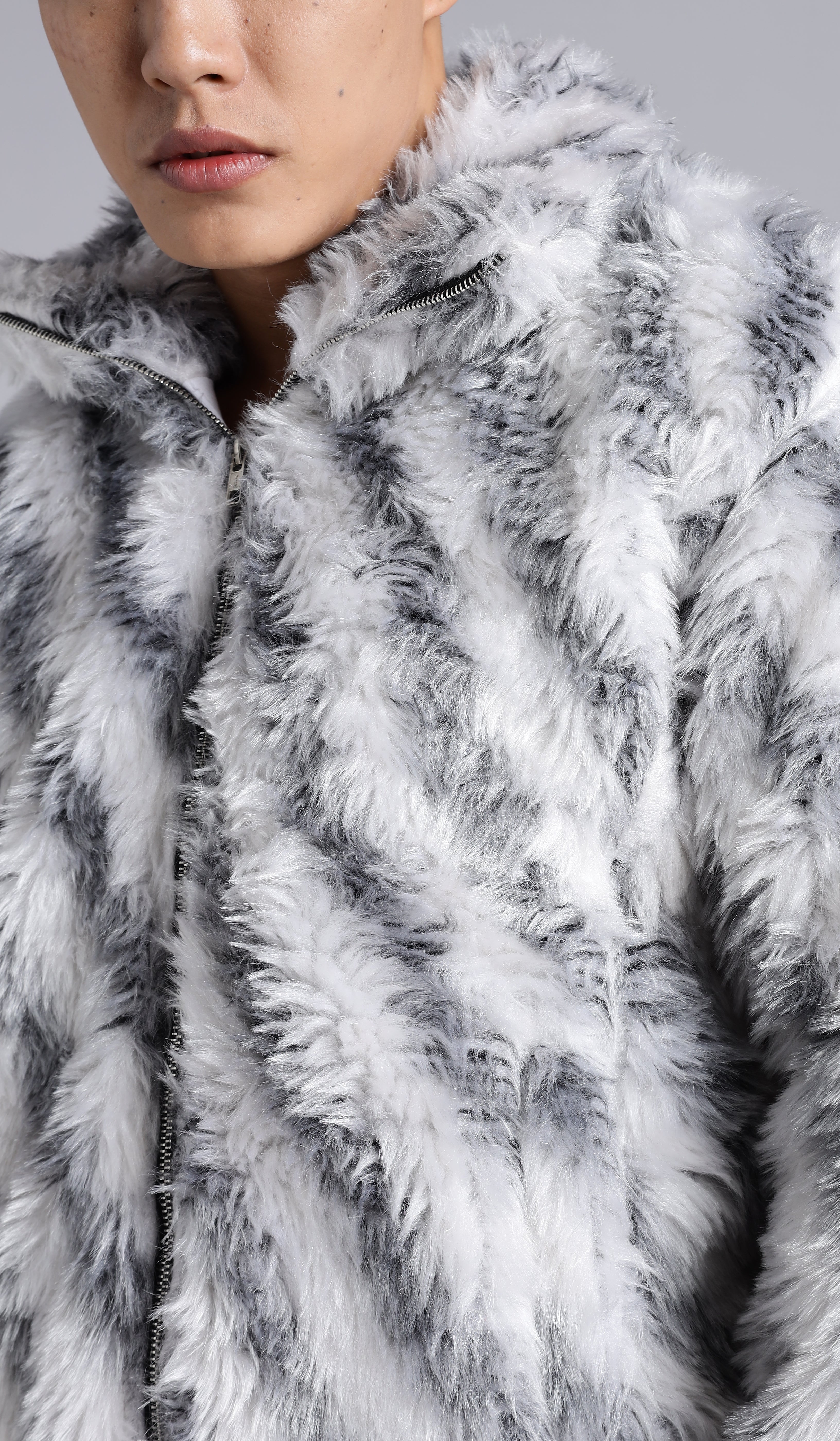 Unleash your inner menace with the Ice Storm Edition – a statement jacket built for those who don’t blend in. This ultra-soft white faux fur piece features grey tiger-stripe patterns that exude raw energy and dominance. Fully lined for maximum comfort and crafted to stand out in any crowd, it’s more than just outerwear – it’s armor for the street kings and queens.